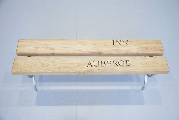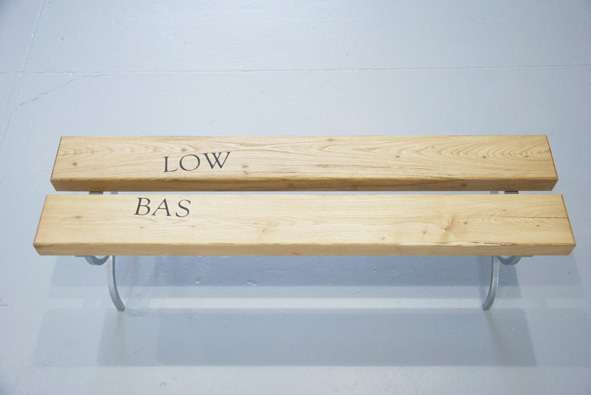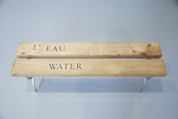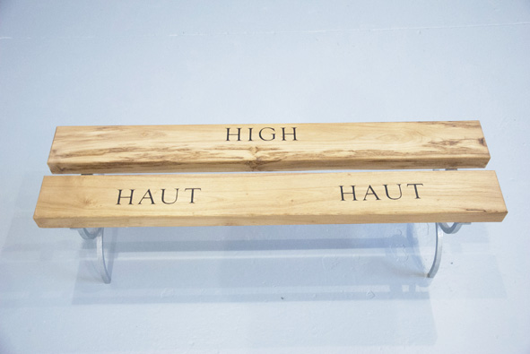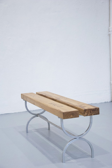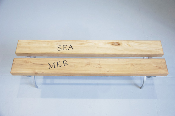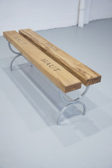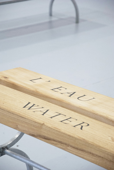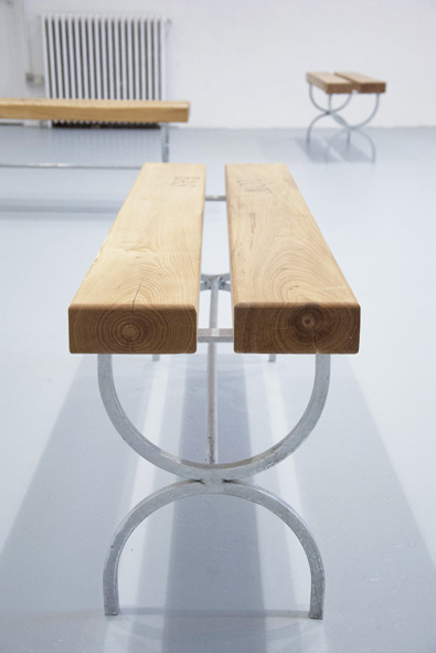 Assises en acacia faux-robinier, incrustations en ébène, pieds en acier galvanisé.